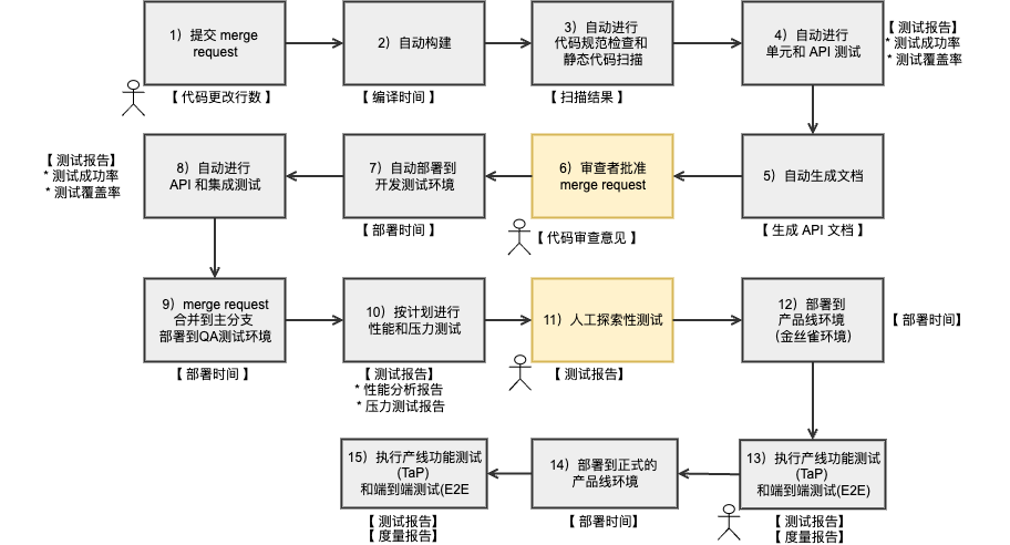 merge request 可触发 build pipeline(包括代码静态检查,单元测试, api test, document generation, etc.)